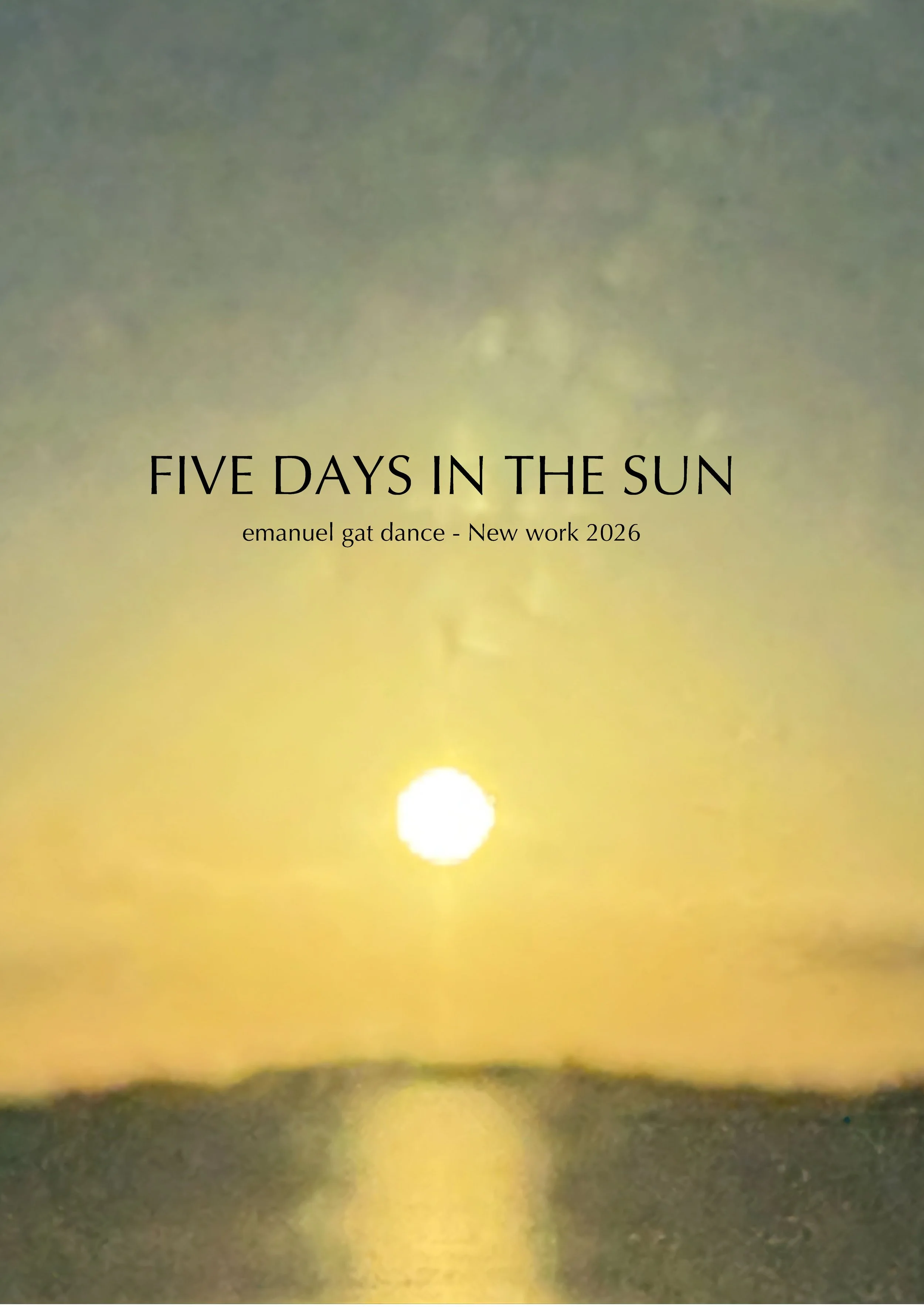 FIVE DAYS IN THE SUN is a work for 12 dancers, developing over five acts and unfolding in an open space governed by a complex and dynamic lighting storyline. The costumes created by polish designer Inez Vicher, add to the layering and richness of this choreographic voyage, exploring transformation, resilience, and catharsis.